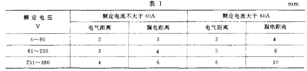 15控製裝置的電氣間隙和漏電距離不得小於表1的規定。