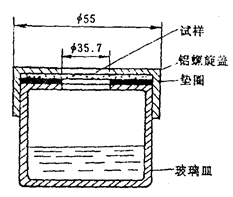 量取30 ml蒸餾水置於皿內,依次放上橡皮墊圈、試樣,然後將鋁質螺旋蓋上緊,不得漏氣,再於天平上稱重。然後將試驗皿放入盛有比重為1.84的濃硫酸的幹燥器中(幹燥器直徑為25 cm),再將幹燥器置於20±l℃的空氣中,靜置24小時後再稱量。